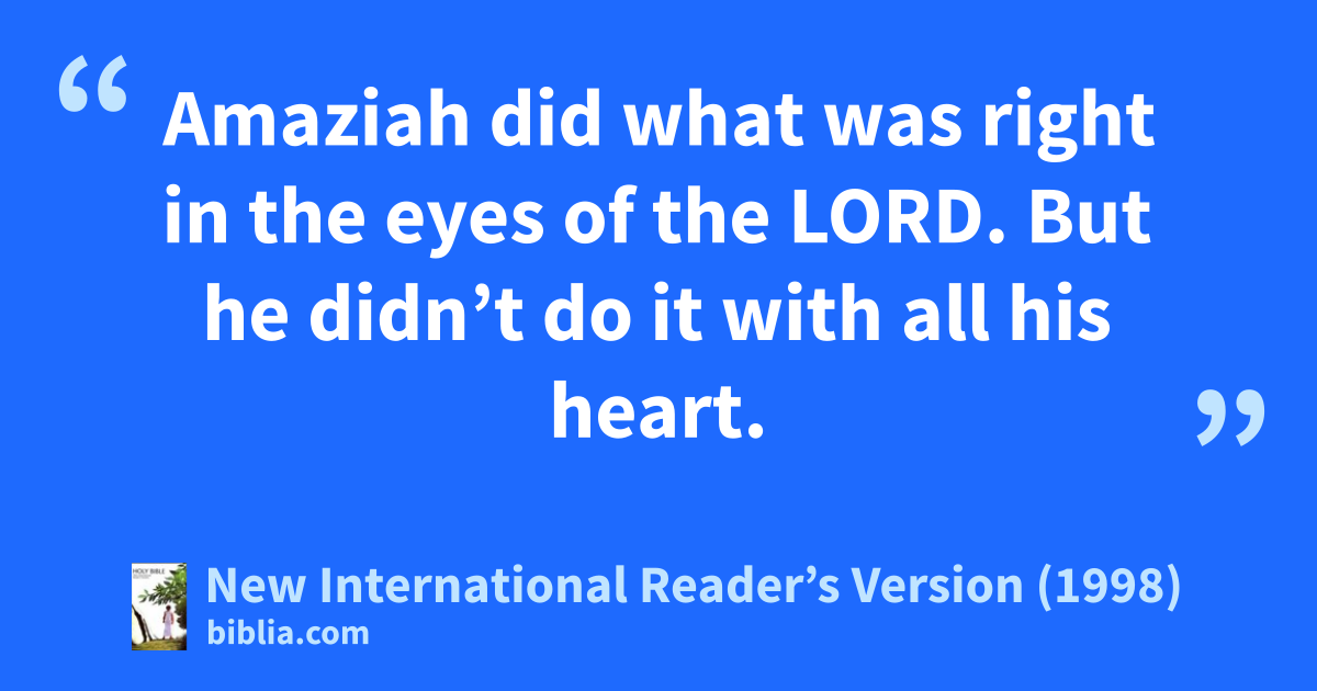 2Amaziah did what was right in the eyes of the Lord. But he didn’t do it with all his heart. 3The kingdom was firmly under his control. So he put to death the officials who had murdered his father, the king.