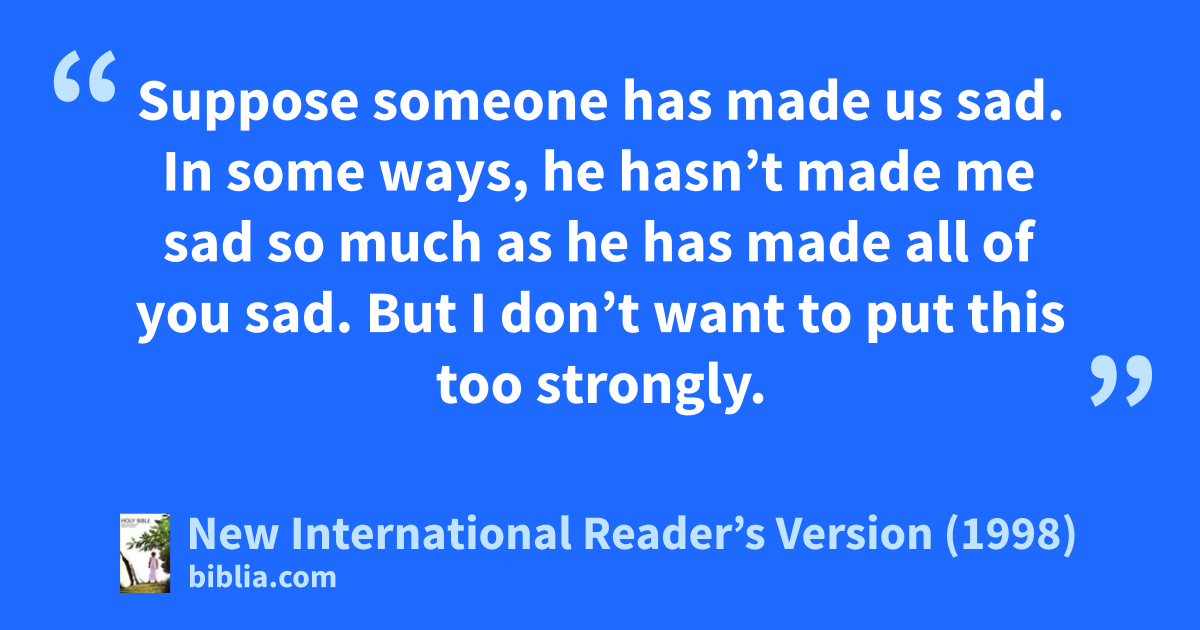 5Suppose someone has made us sad. In some ways, he hasn’t made me sad so much as he has made all of you sad. But I don’t want to put this too strongly. 6He has been punished because most of you decided he should be. That is enough for him.