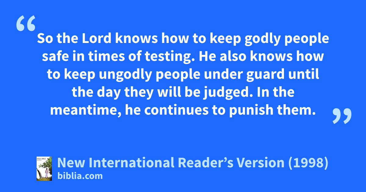 9So the Lord knows how to keep godly people safe in times of testing. He also knows how to keep ungodly people under guard until the day they will be judged. In the meantime, he continues to punish them. 10Most of all, this is true of people who follow the evil longings of their sinful natures. They hate to be under authority.