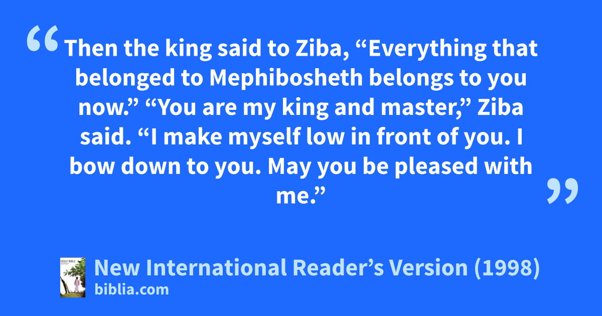 4Then the king said to Ziba, “Everything that belonged to Mephibosheth belongs to you now.”