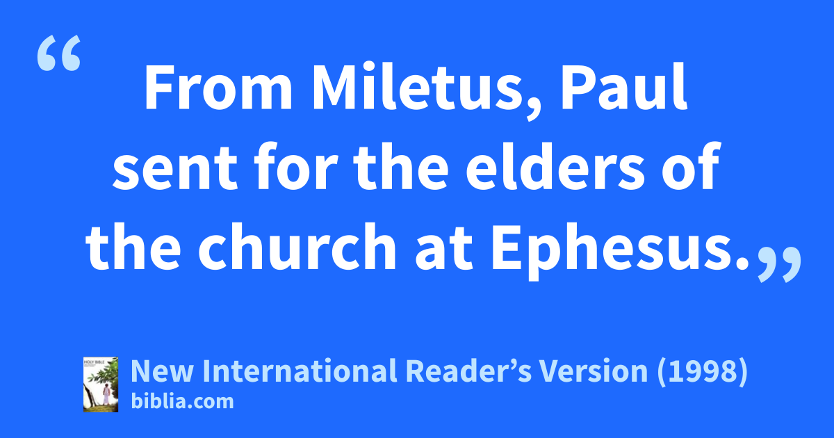 17From Miletus, Paul sent for the elders of the church at Ephesus. 18When they arrived, he spoke to them. “You know how I lived the whole time I was with you,” he said. “From the first day I came into Asia Minor, 19I was free of pride. I served the Lord with tears. I served him even though I was greatly tested by the evil plans of the Jews. 20You know I haven’t let anyone keep me from preaching anything that would be helpful to you. I have taught you in public and from house to house. 21I have told both Jews and Greeks that they must turn away from their sins to God. They must have faith in our Lord Jesus.