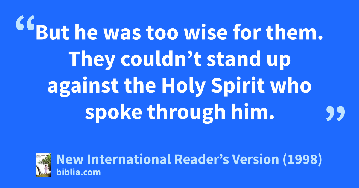 8Stephen was full of God’s grace and power. He did great wonders and miraculous signs among the people. 9But members of the group called the Synagogue of the Freedmen began to oppose him. Some of them were Jews from Cyrene and Alexandria. Others were Jews from Cilicia and Asia Minor. They all began to argue with Stephen. 10But he was too wise for them. They couldn’t stand up against the Holy Spirit who spoke through him.