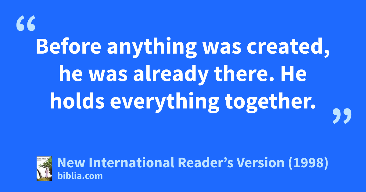 15Christ is the exact likeness of God, who can’t be seen. He is first, and he is over all of creation. 16All things were created by him. He created everything in heaven and on earth. He created everything that can be seen and everything that can’t be seen. He created kings, powers, rulers and authorities. Everything was created by him and for him. 17Before anything was created, he was already there. He holds everything together.