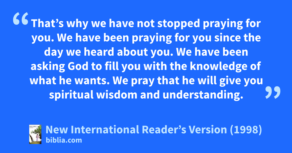 9That’s why we have not stopped praying for you. We have been praying for you since the day we heard about you. We have been asking God to fill you with the knowledge of what he wants. We pray that he will give you spiritual wisdom and understanding.