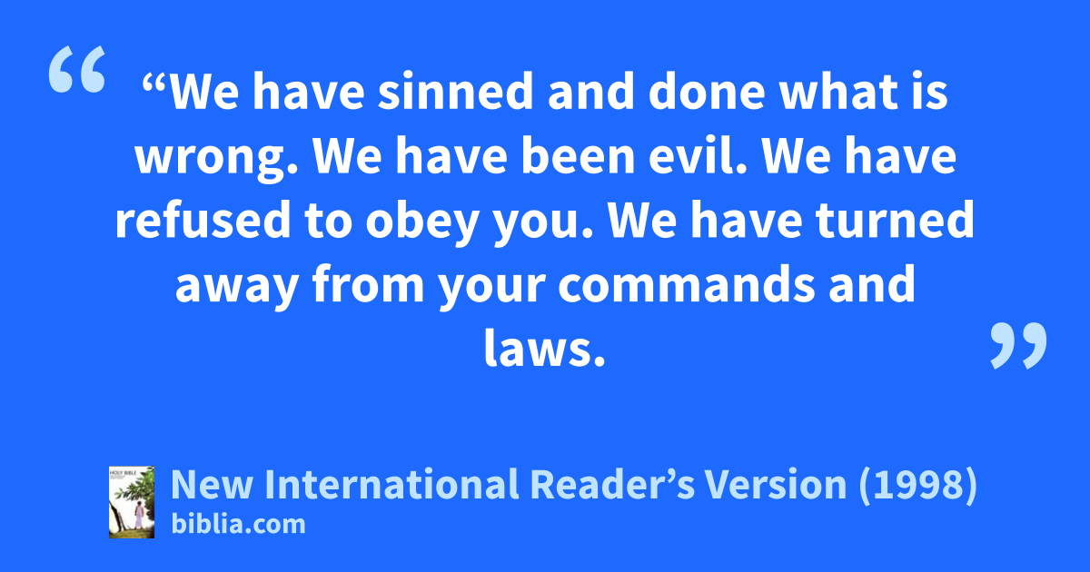 5“We have sinned and done what is wrong. We have been evil. We have refused to obey you. We have turned away from your commands and laws. 6We haven’t listened to your servants the prophets. They spoke in your name to our kings and princes. They also brought your message to all of our people in the land.