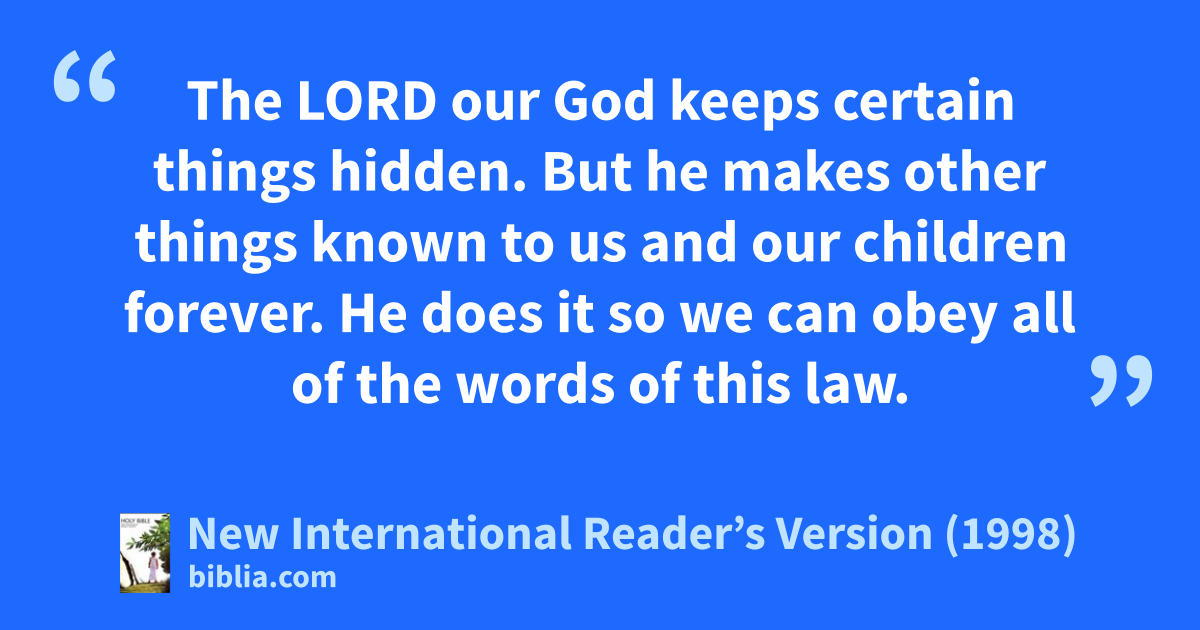 29The Lord our God keeps certain things hidden. But he makes other things known to us and our children forever. He does it so we can obey all of the words of this law.