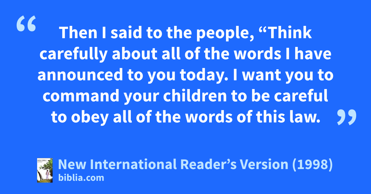 46Then I said to the people, “Think carefully about all of the words I have announced to you today. I want you to command your children to be careful to obey all of the words of this law. 47They aren’t just useless words for you. They are your very life. If you obey them, you will live in the land for a long time. It’s the land you are going across the Jordan River to take as your own.”