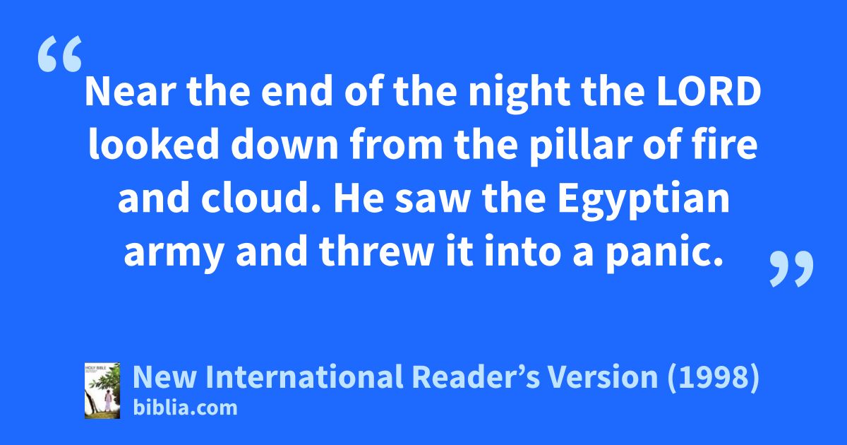 24Near the end of the night the Lord looked down from the pillar of fire and cloud. He saw the Egyptian army and threw it into a panic. 25He kept their chariot wheels from turning freely. That made the chariots hard to drive.