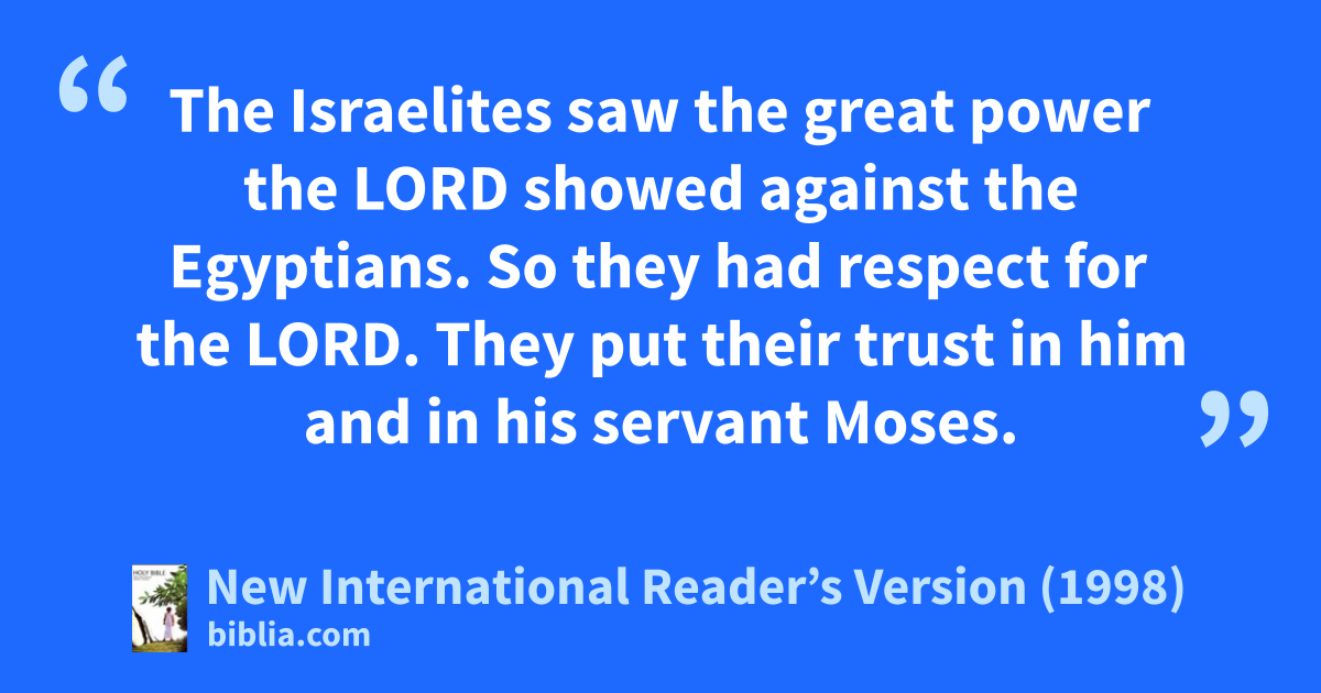 29But the Israelites went through the sea on dry ground. There was a wall of water on their right side and on their left. 30That day the Lord saved Israel from the power of Egypt. Israel saw the Egyptians lying dead on the shore. 31The Israelites saw the great power the Lord showed against the Egyptians. So they had respect for the Lord. They put their trust in him and in his servant Moses.