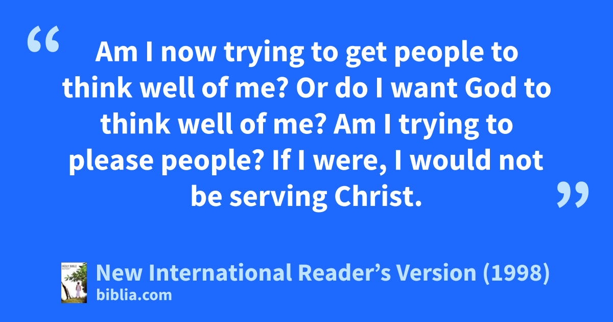 10Am I now trying to get people to think well of me? Or do I want God to think well of me? Am I trying to please people? If I were, I would not be serving Christ.