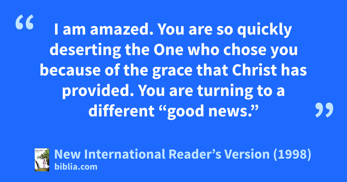 6I am amazed. You are so quickly deserting the One who chose you because of the grace that Christ has provided. You are turning to a different “good news.” 7What you are accepting is really not the good news at all.