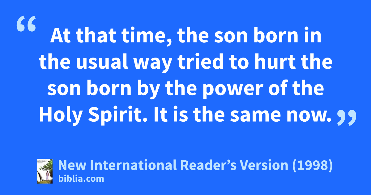 28Brothers and sisters, you are children because of God’s promise just as Isaac was. 29At that time, the son born in the usual way tried to hurt the son born by the power of the Holy Spirit. It is the same now.
