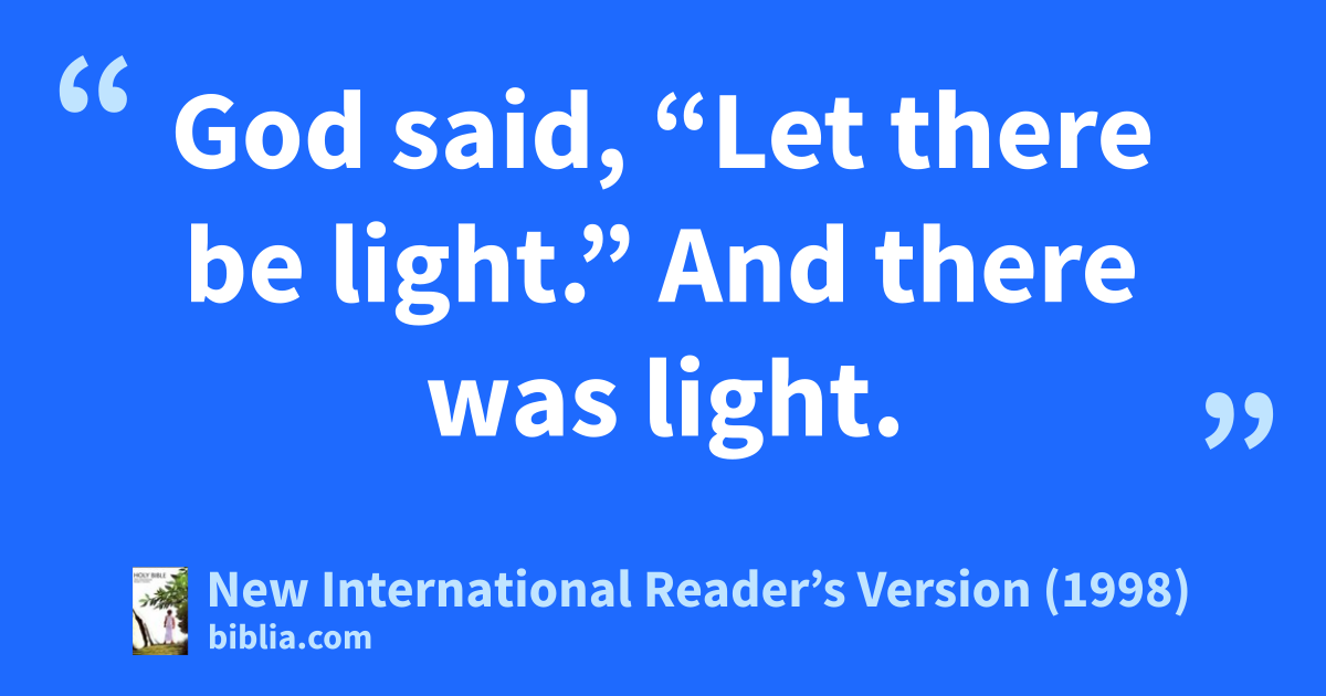 3 God said, “Let there be light.” And there was light. 4God saw that the light was good. He separated the light from the darkness. 5God called the light “day.” He called the darkness “night.” There was evening, and there was morning. It was day one.