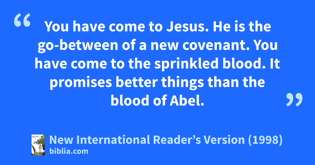 You have come to the spirits of godly people who have been made perfect. 24You have come to Jesus. He is the go-between of a new covenant. You have come to the sprinkled blood. It promises better things than the blood of Abel.