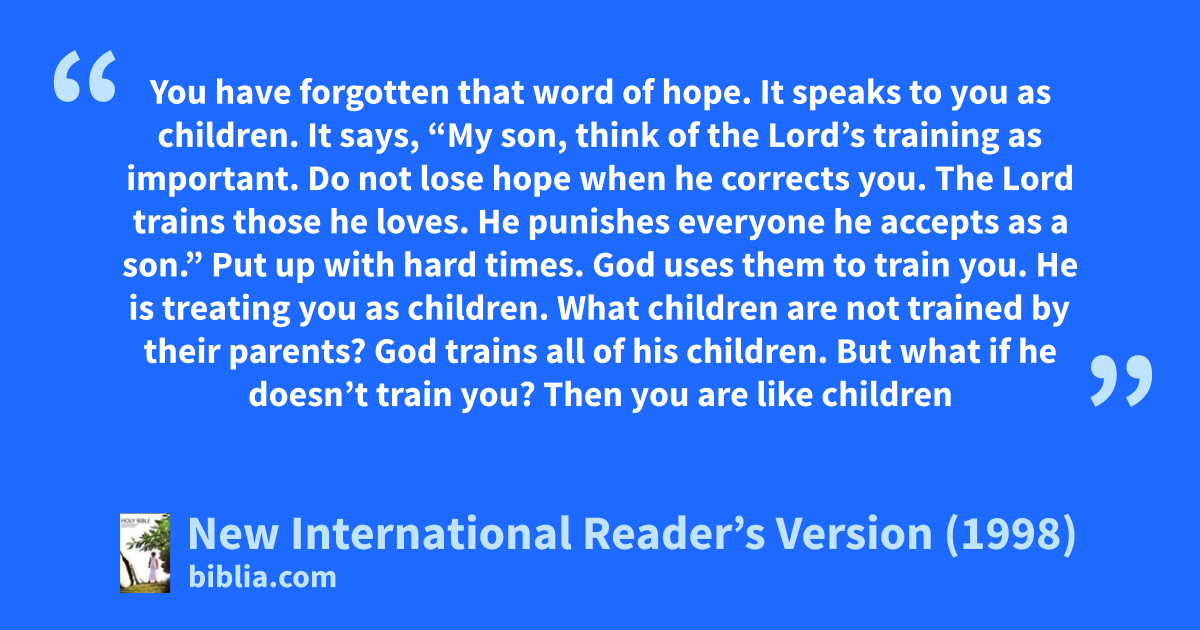 7Put up with hard times. God uses them to train you. He is treating you as children. What children are not trained by their parents? 8God trains all of his children. But what if he doesn’t train you? Then you are like children of people who weren’t married to each other. You are not truly God’s children.