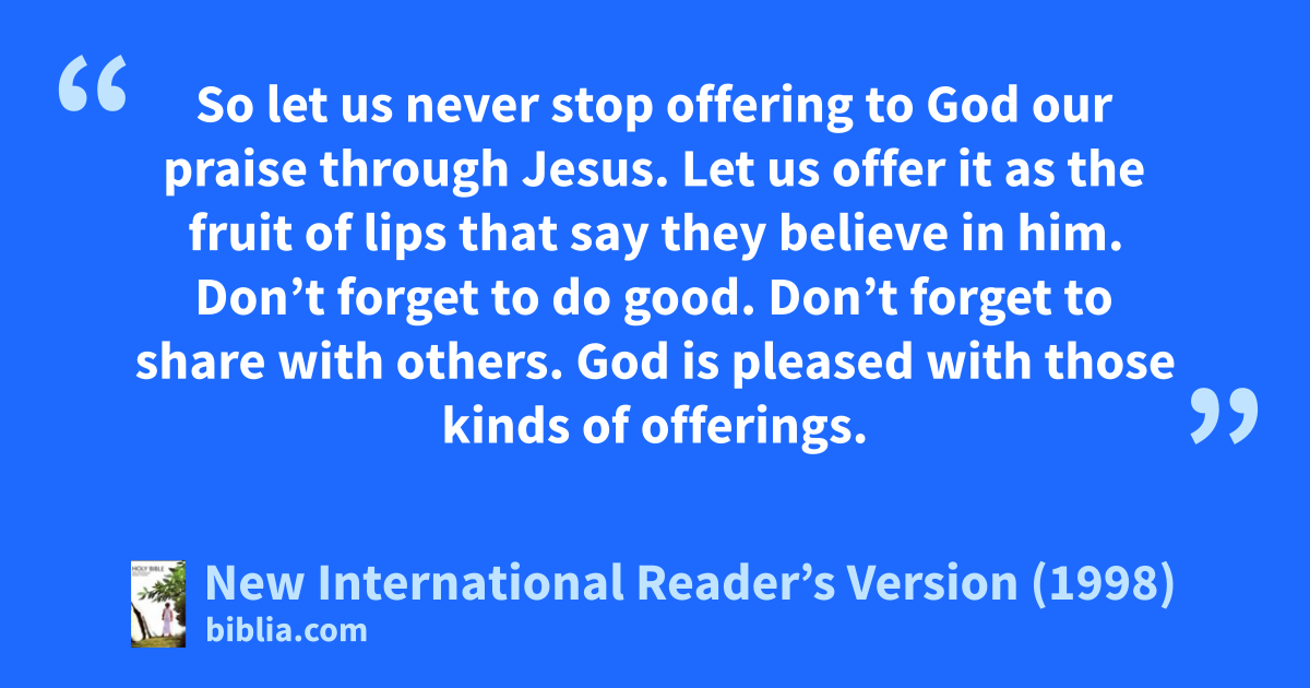 16Don’t forget to do good. Don’t forget to share with others. God is pleased with those kinds of offerings.