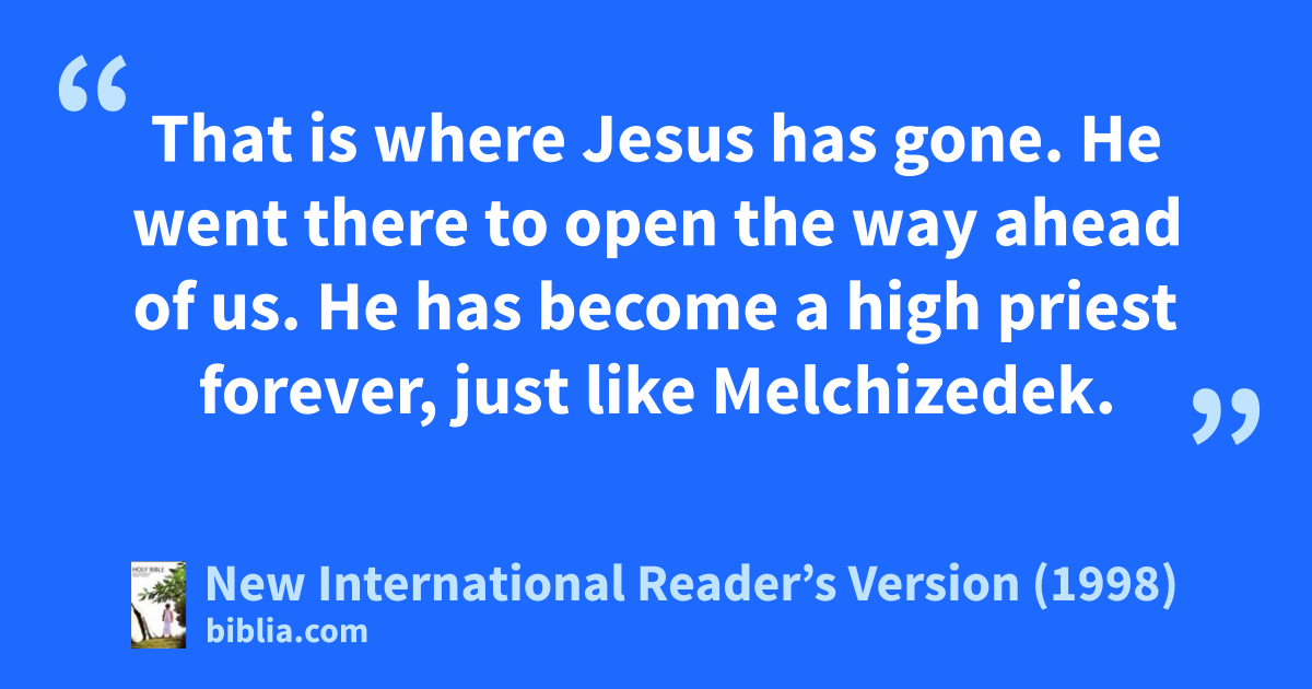 19Our hope is certain. It is something for the soul to hold on to. It is strong and secure. It goes all the way into the Most Holy Room behind the curtain. 20That is where Jesus has gone. He went there to open the way ahead of us. He has become a high priest forever, just like Melchizedek.