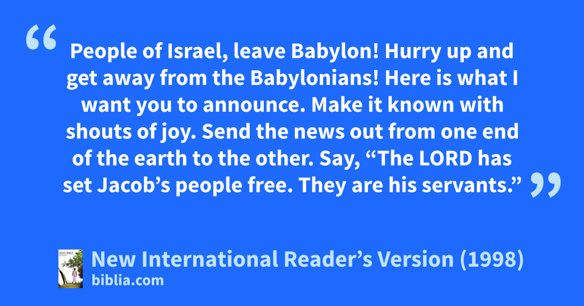 Copyright © 1995, 1996, 1998 by International Bible Society. All rights reserved. The NIrV text may be quoted for non-commercial usage in any form (written, visual, electronic or audio) up to and inclusive of five hundred (500) verses without the express written permission of the publisher, providing the verses quoted do not amount to a complete book of the Bible nor do the verses quoted account for twenty-five percent (25%) or more of the total text of the work in which they are quoted. Notice of copyright must appear on the title or copyright page of the work as follows: Scripture taken from the HOLY BIBLE, NEW INTERNATIONAL READER’S VERSION™. Copyright © 1995, 1996, 1998 by International Bible Society. Used by permission of Zondervan. All rights reserved. When quotations from the NIrV text are used in non-saleable media, such as church bulletins, orders of service, posters, transparencies or similar media, a complete copyright notice is not required, but the initials (NIrV) must appear at the end of each quotation. Any commentary or other Biblical reference work produced for commercial sale that uses the New International Reader’s Version must obtain written permission for use of the NIrV text. Permission requests for commercial use within the U.S. and Canada that exceed the above guidelines must be directed to, and approved in writing by, Zondervan, 5300 Patterson Ave. S.E., Grand Rapids, MI 49530. Permission requests for commercial use within the U.K., EEC, and EFTA countries that exceed the above guidelines must be directed to, and approved in writing by, Hodder Headline Plc., 338 Euston Road, London NW1 3BH, England. Permission requests for non-commercial usage that exceed the above guidelines must be directed to, and approved in writing by, International Bible Society, 1820 Jet Stream Drive, Colorado Springs, CO 80921. |