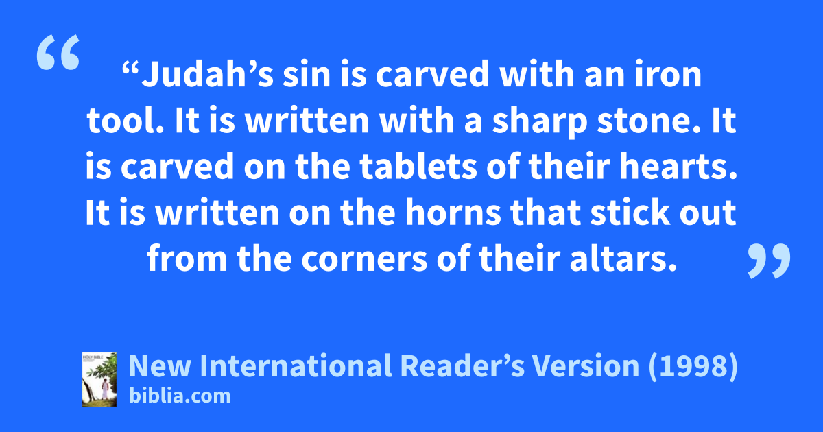 17 “Judah’s sin is carved with an iron tool. It is written with a sharp stone.