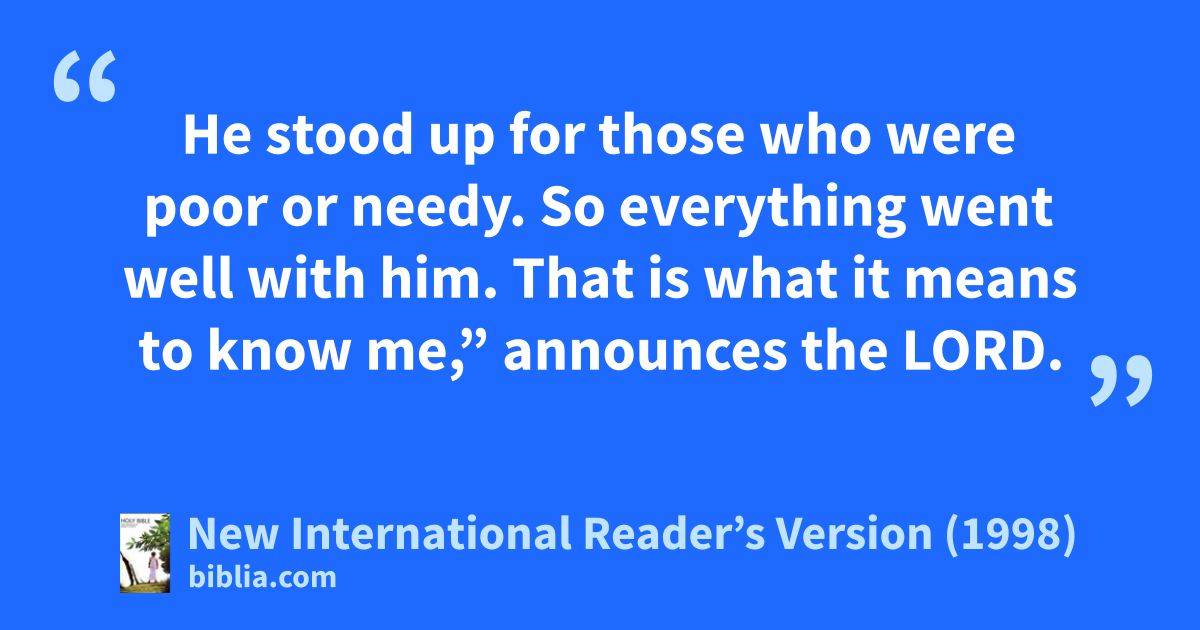 22 The Lord said to me, “Jeremiah, go down to the palace of the king of Judah. Announce my message there. Tell him, 2‘King of Judah, listen to the Lord’s message. You are sitting on David’s throne. You and your officials and your people come through these gates. 3The Lord says, “Do what is fair and right. Save those who have been robbed. Set them free from the people who have treated them badly. Do not do anything wrong to outsiders or widows in this place. Do not harm children whose fathers have died. Do not kill those who are not guilty of doing anything wrong.