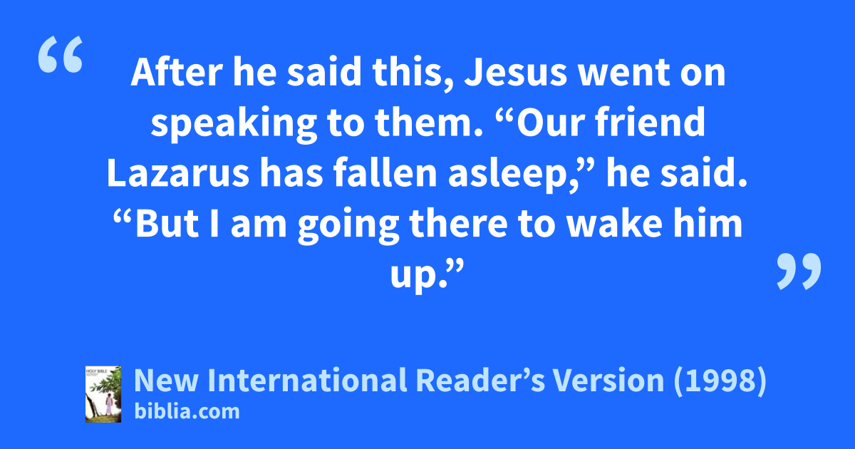 11After he said this, Jesus went on speaking to them. “Our friend Lazarus has fallen asleep,” he said. “But I am going there to wake him up.”