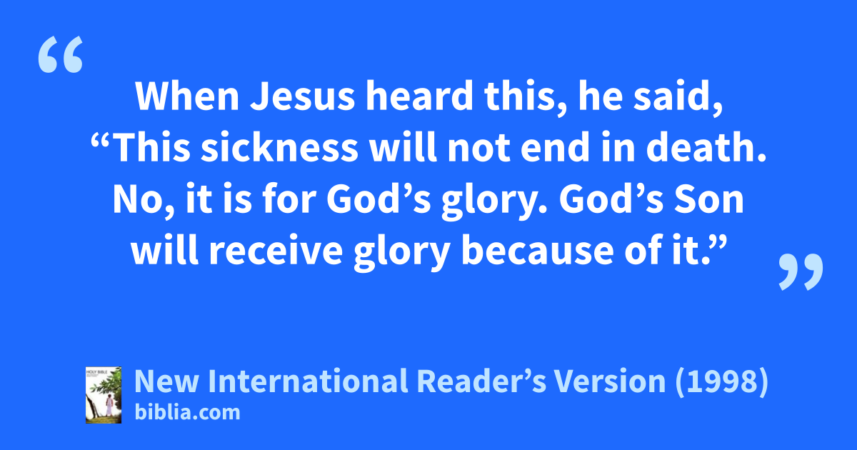 4When Jesus heard this, he said, “This sickness will not end in death. No, it is for God’s glory. God’s Son will receive glory because of it.”