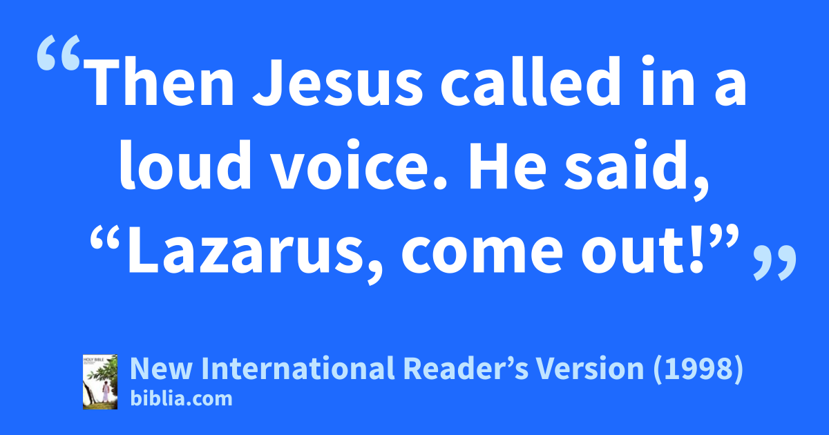 43Then Jesus called in a loud voice. He said, “Lazarus, come out!”