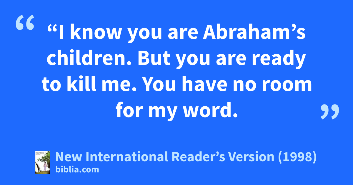 37“I know you are Abraham’s children. But you are ready to kill me. You have no room for my word. 38I am telling you what I saw when I was with my Father. You do what you have heard from your father.”