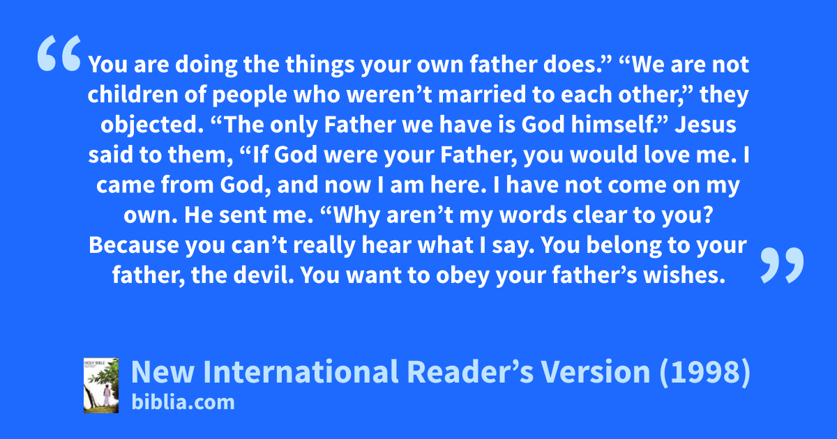 43“Why aren’t my words clear to you? Because you can’t really hear what I say. 44You belong to your father, the devil. You want to obey your father’s wishes.