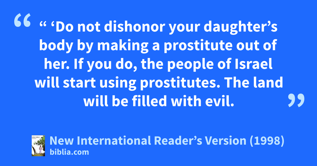 29“ ‘Do not dishonor your daughter’s body by making a prostitute out of her. If you do, the people of Israel will start using prostitutes. The land will be filled with evil.