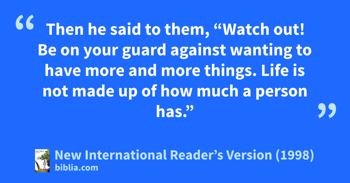 15Then he said to them, “Watch out! Be on your guard against wanting to have more and more things. Life is not made up of how much a person has.”