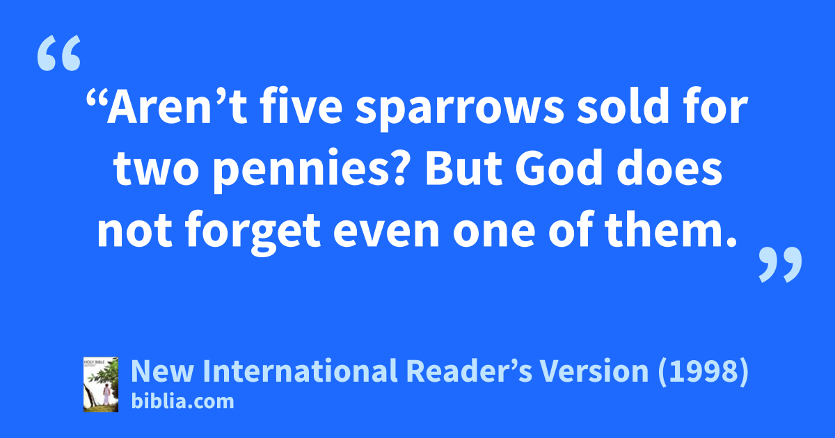 6“Aren’t five sparrows sold for two pennies? But God does not forget even one of them. 7In fact, he even counts every hair on your head! So don’t be afraid. You are worth more than many sparrows.