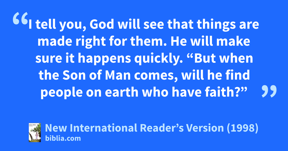 “But when the Son of Man comes, will he find people on earth who have faith?”