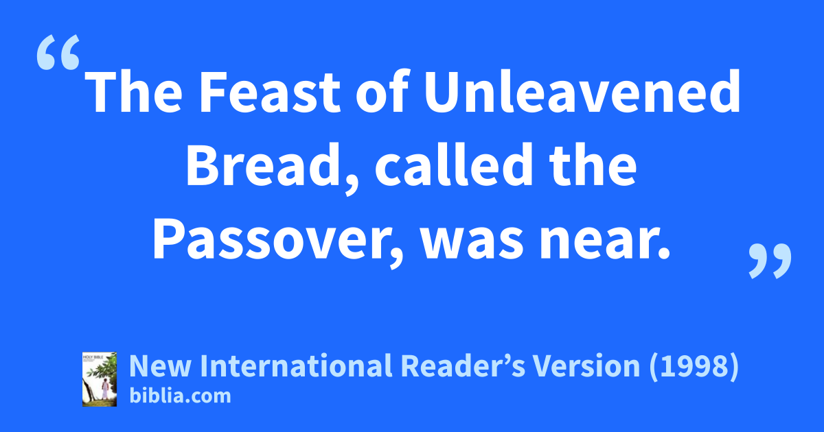 22 The Feast of Unleavened Bread, called the Passover, was near. 2The chief priests and the teachers of the law were looking for a way to get rid of Jesus. They were afraid of the people.