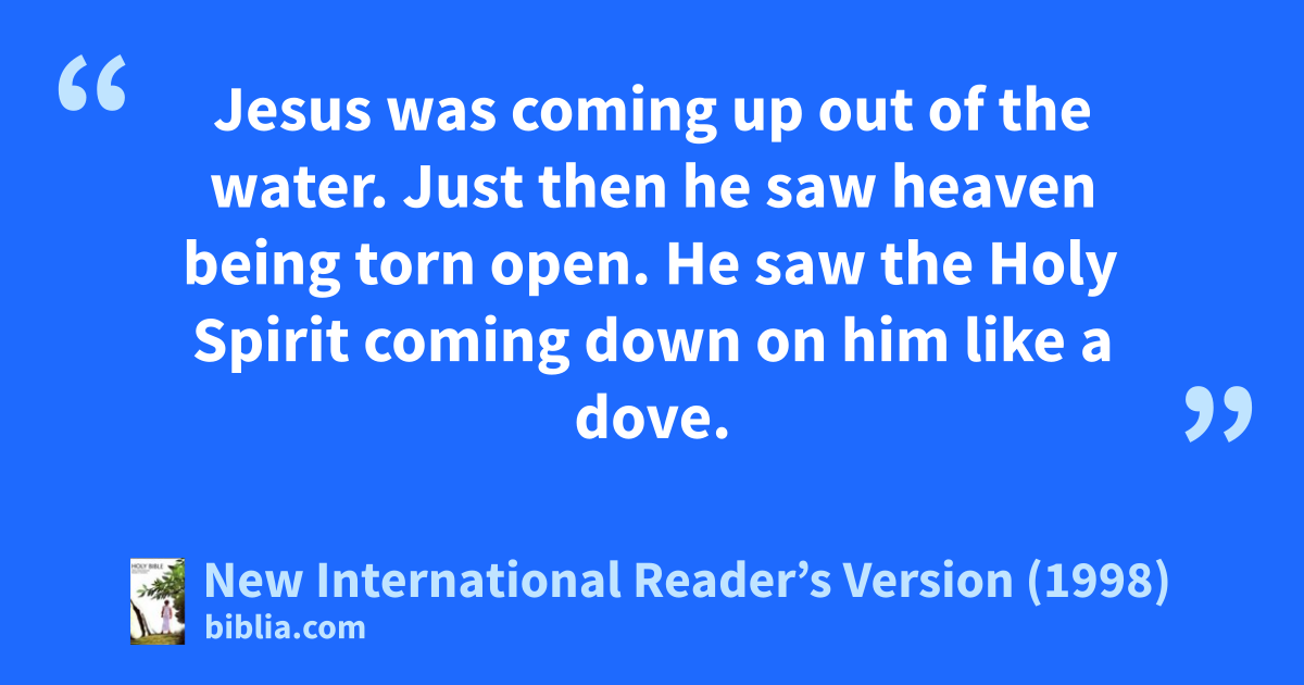 9At that time Jesus came from Nazareth in Galilee. John baptized him in the Jordan River. 10Jesus was coming up out of the water. Just then he saw heaven being torn open. He saw the Holy Spirit coming down on him like a dove. 11A voice spoke to him from heaven. It said, “You are my Son, and I love you. I am very pleased with you.”