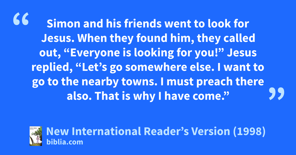 38Jesus replied, “Let’s go somewhere else. I want to go to the nearby towns. I must preach there also. That is why I have come.” 39So he traveled all around Galilee. He preached in their synagogues. He also drove out demons.