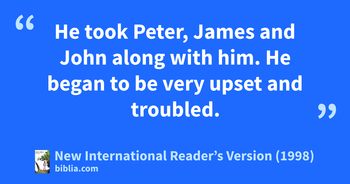 33He took Peter, James and John along with him. He began to be very upset and troubled. 34“My soul is very sad. I feel close to death,” he said to them. “Stay here. Keep watch.”