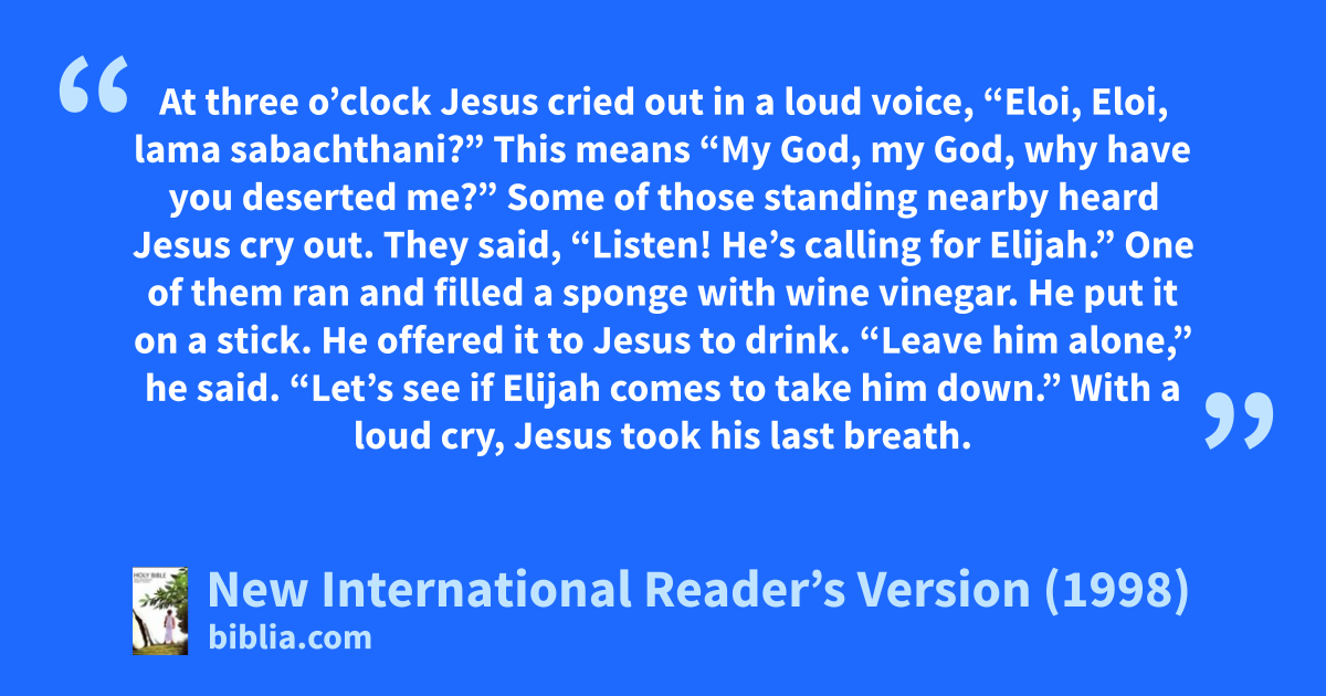 35Some of those standing nearby heard Jesus cry out. They said, “Listen! He’s calling for Elijah.”