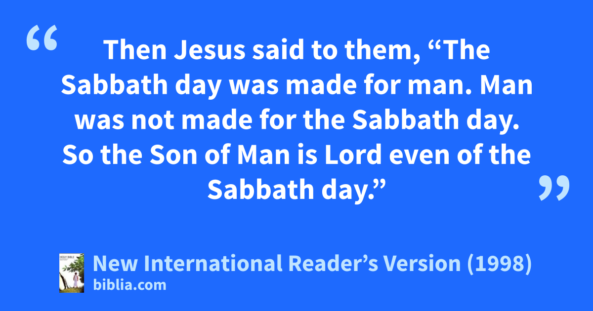 27Then Jesus said to them, “The Sabbath day was made for man. Man was not made for the Sabbath day. 28So the Son of Man is Lord even of the Sabbath day.”