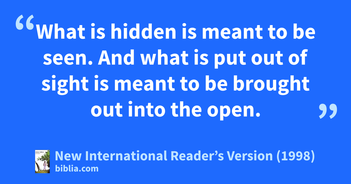 21Jesus said to them, “Do you bring in a lamp to put it under a large bowl or a bed? Don’t you put it on its stand? 22What is hidden is meant to be seen. And what is put out of sight is meant to be brought out into the open. 23Everyone who has ears should listen.”