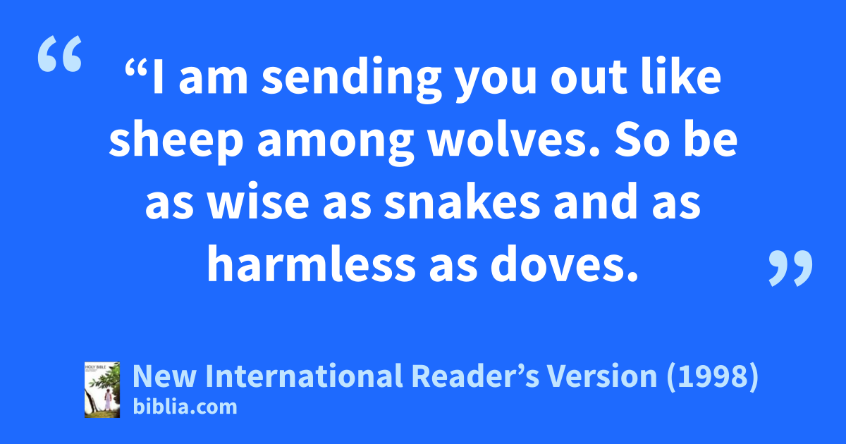 16“I am sending you out like sheep among wolves. So be as wise as snakes and as harmless as doves.