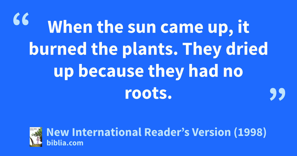 18“Listen! Here is the meaning of the story of the farmer. 19People hear the message about the kingdom but do not understand it. Then the evil one comes. He steals what was planted in their hearts. Those people are like the seed planted on a path. 20Others received the seed that fell on rocky places. They are those who hear the message and at once receive it with joy. 21But they have no roots. So they last only a short time. They quickly fall away from the faith when trouble or suffering comes because of the message. 22Others received the seed that fell among the thorns. They are those who hear the message. But then the worries of this life and the false promises of wealth crowd it out. They keep it from producing fruit. 23But still others received the seed that fell on good soil. They are those who hear the message and understand it. They produce a crop 100, 60 or 30 times more than the farmer planted.”