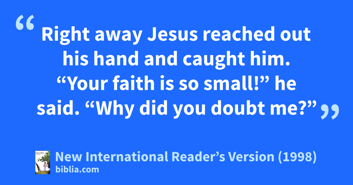31Right away Jesus reached out his hand and caught him. “Your faith is so small!” he said. “Why did you doubt me?”