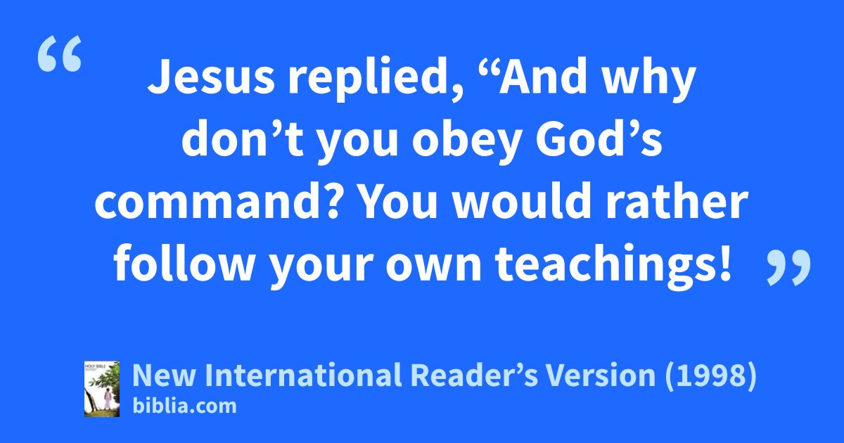 3Jesus replied, “And why don’t you obey God’s command? You would rather follow your own teachings! 4God said, ‘Honor your father and mother.’ (Exodus 20:12; Deuteronomy 5:16) He also said, ‘If anyone calls down a curse on his father or mother, he will be put to death.’ (Exodus 21:17; Leviticus 20:9) 5But you allow people to say to their parents, ‘Any help you might have received from us is a gift set apart for God.’ 6So they do not need to honor their parents with their gift. You make the word of God useless in order to follow your own teachings.