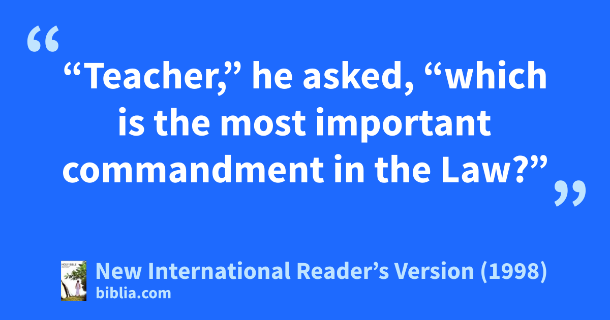 34The Pharisees heard that the Sadducees weren’t able to answer Jesus. So the Pharisees got together. 35One of them was an authority on the law. So he tested Jesus with a question. 36“Teacher,” he asked, “which is the most important commandment in the Law?”