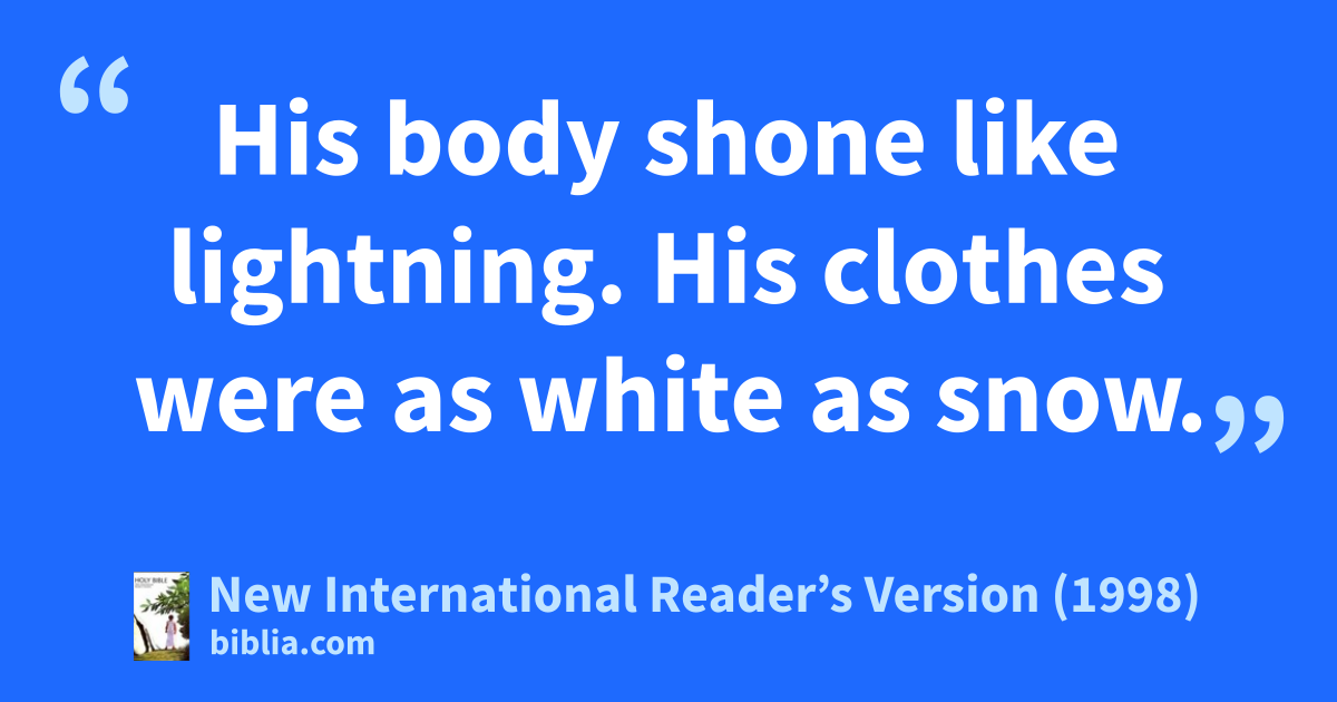 2There was a powerful earthquake. An angel of the Lord came down from heaven. The angel went to the tomb. He rolled back the stone and sat on it. 3His body shone like lightning. His clothes were as white as snow. 4The guards were so afraid of him that they shook and became like dead men.