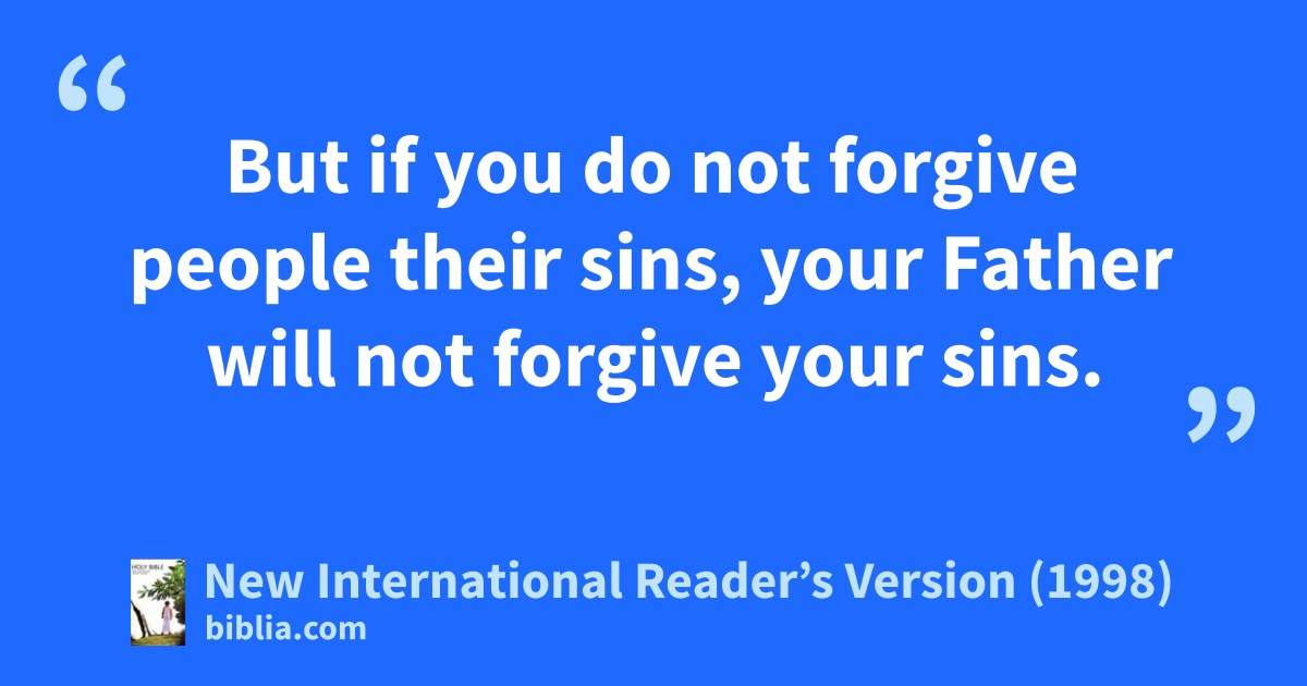 14“Forgive people when they sin against you. If you do, your Father who is in heaven will also forgive you. 15But if you do not forgive people their sins, your Father will not forgive your sins.