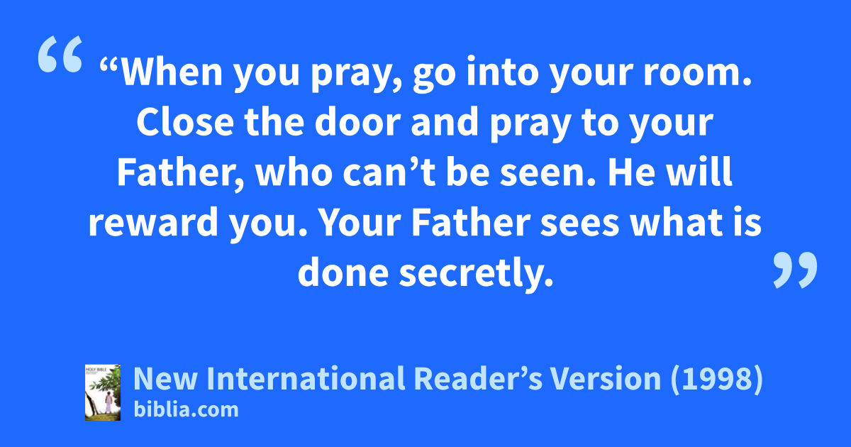 6“When you pray, go into your room. Close the door and pray to your Father, who can’t be seen. He will reward you. Your Father sees what is done secretly.
