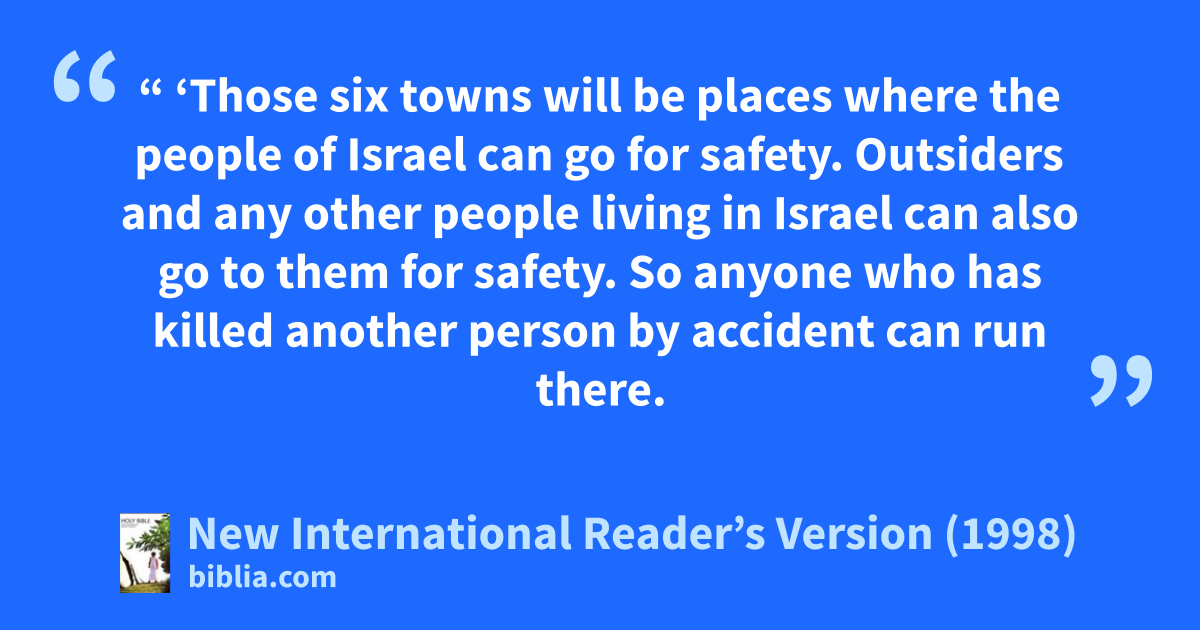 15“ ‘Those six towns will be places where the people of Israel can go for safety. Outsiders and any other people living in Israel can also go to them for safety. So anyone who has killed another person by accident can run there.