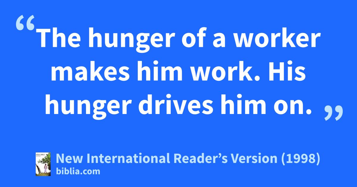 26 The hunger of a worker makes him work.